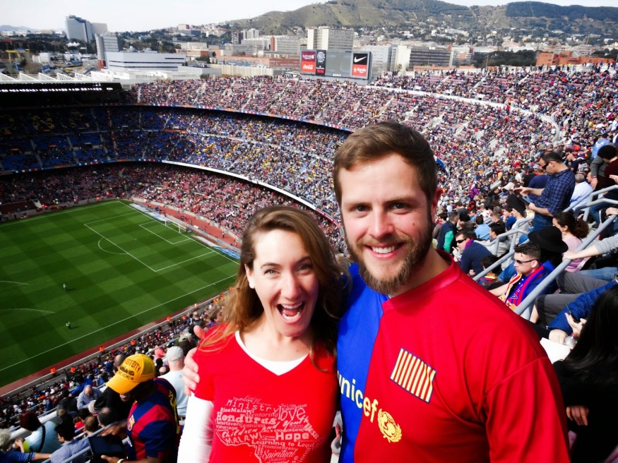 We have been waiting to go to an FC Barcelona game for seemingly FOREVER. Finally this past weekend we made it to the infamous Camp Nou Stadium for a match between FC Barcelona and Rayo Vallecano with a group of our good friends. Although fairly high up, we had amazing seats in center field that provided a great view of this unforgettable match. With a score of 6 – 1 (Barca), and a hat-trick scored by none other than Messi himself, we didn’t leave disappointed. Ole Ole Barcelona!