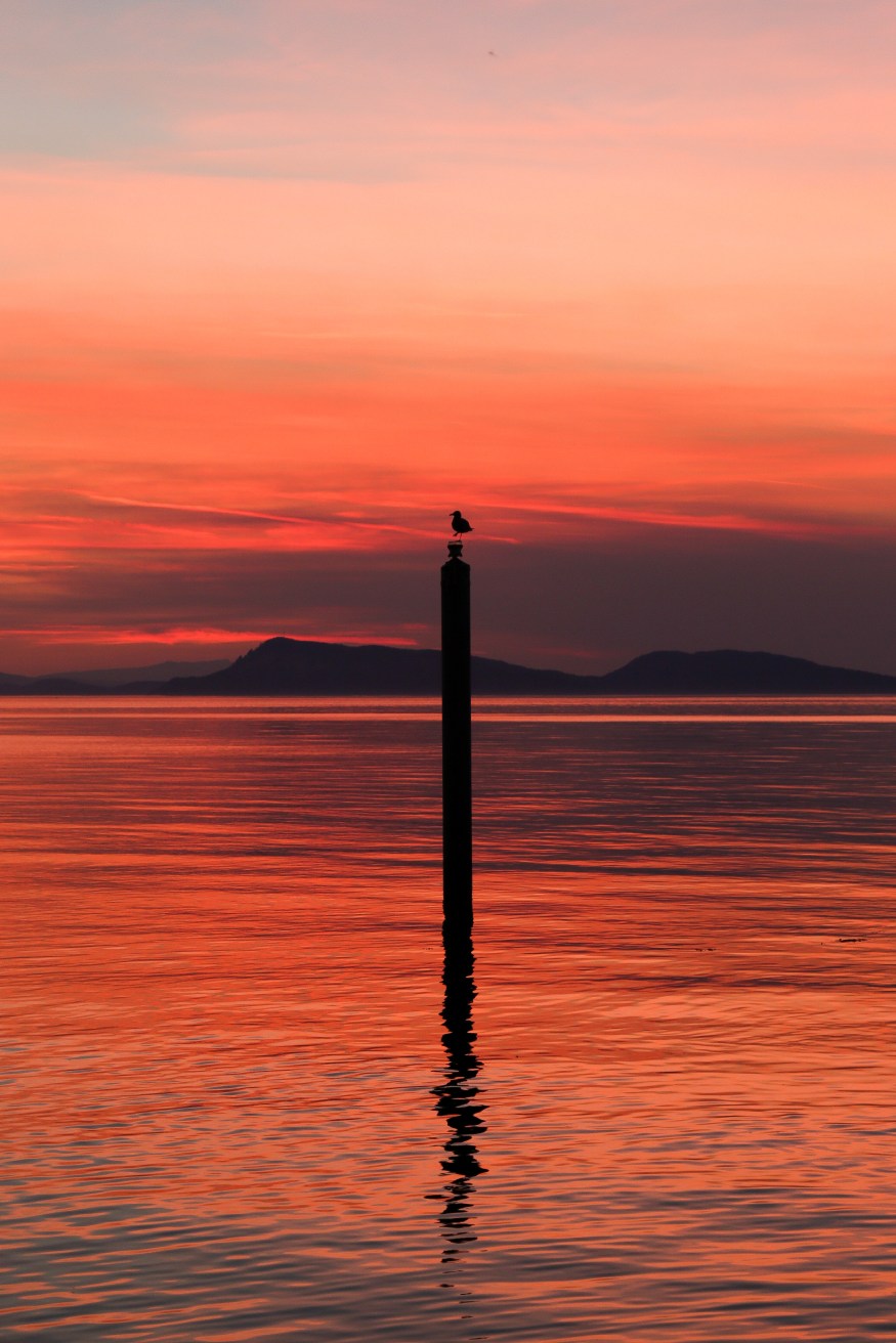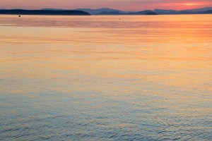 What better way to end our time in the San Juan Islands than to experience a gorgeous watercolor-like sunset as we listen to the waves lap up on the rocky pier we sat on to enjoy the view. seat. Bring a blanket, your binoculars, and a bottle of wine to enjoy while you watch the day fade and the night rise. We drove to the North Beach Public Access, parked our car and walked along the beach to one of the rocky piers for this gorgeous view of the setting sun into the calm salty ocean below.