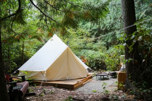 For our night on San Juan Island, we decided to stay on someone’s property in this beautiful lotus tent. They had no plumbing or running water on the site, so that was the only downside. To shower, we ended up driving to Roche Harbor where they have public showers that you can pay about $1.25 for a 7-minute shower in a private lockable room.