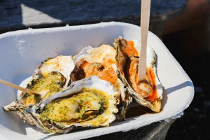 We absolutely loved this relaxed spot on the NorthWest corner of the Island. You can grab a drink, some of their freshly baked bread, or raw oysters anytime that they are open. If you want some of their specialty grilled oysters (we decided to try those since we’re not huge fans of sucking down a raw shellfish), you’ll have to come during the week, as they don’t serve grilled oysters on the weekends. Order your choice of shellfish, grab a picnic table in the sun and enjoy!
